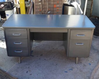 Steelcase double pedestal tanker desk & a 50's general fireproofing #2327 goodform chair.